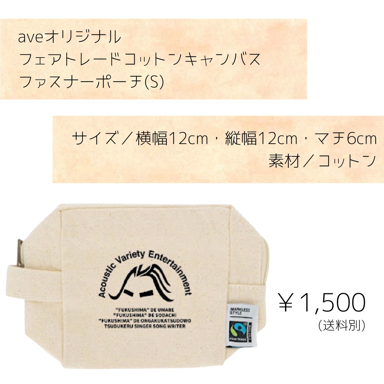 aveオリジナルフェアトレードコットンキャンバスファスナーポーチ(S)